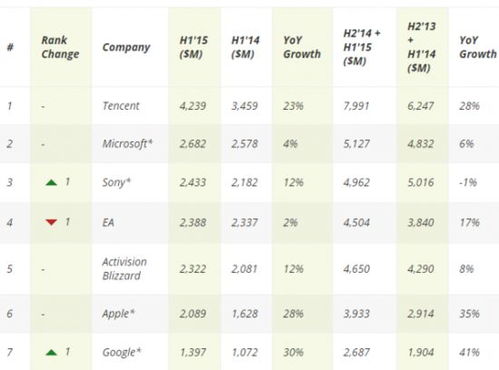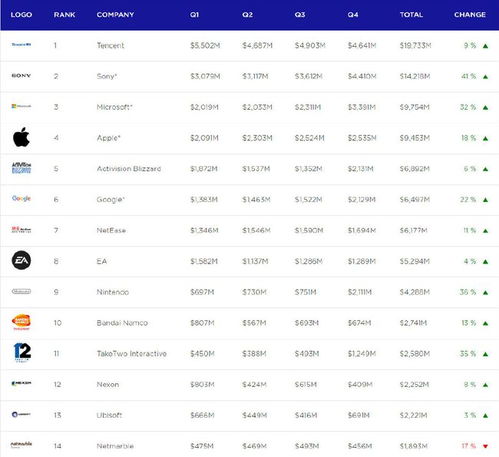 哇,你有没有想过,当你在屏幕前挥汗如雨地战斗时,背后有多少游戏公司正在默默耕耘,为你带来一场又一场的视觉盛宴?今天,就让我们一起揭开神秘的面纱,探索一下世界游戏厂商的排名之谜吧!